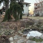The Kruse garden, at 527 Main Street, belongs to the original house built in 1917 and presumably the garden dates back closely to that time. Past Kruse garden volunteers describe uncovering stone paths buried in layers of soil, digging a hole to find the hole belonging to the goldfish pond (though we don’t keep goldfish)and explained the north hillside was originally a rock garden. This long established garden offers visual interest in hardscaping, mature trees and perennials left standing from the past season.